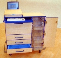 Arbeitsplatte beeinhaltet ein abschließbares Fach für Laptops